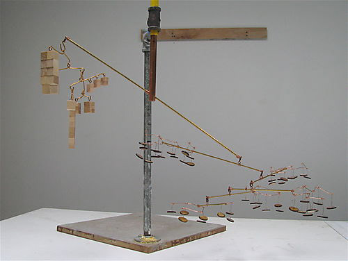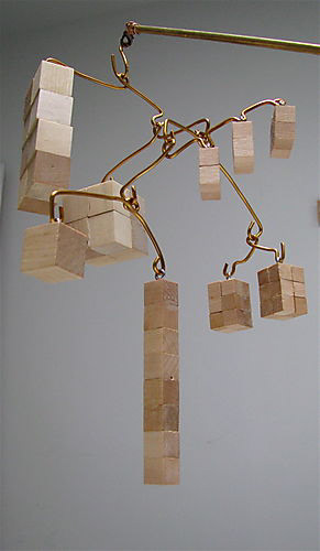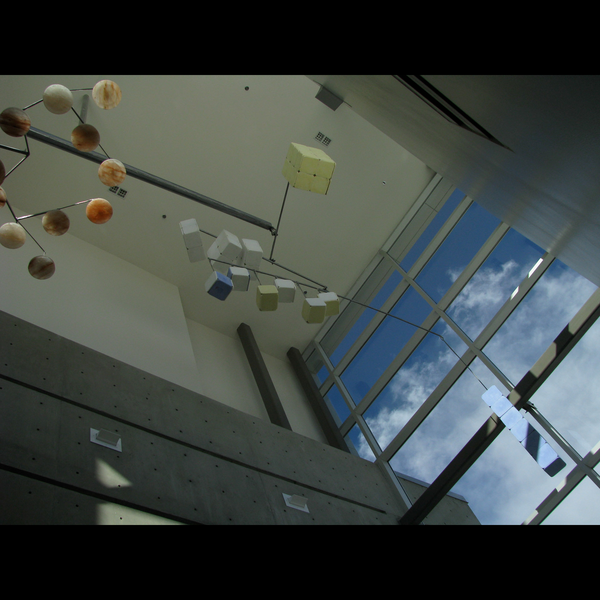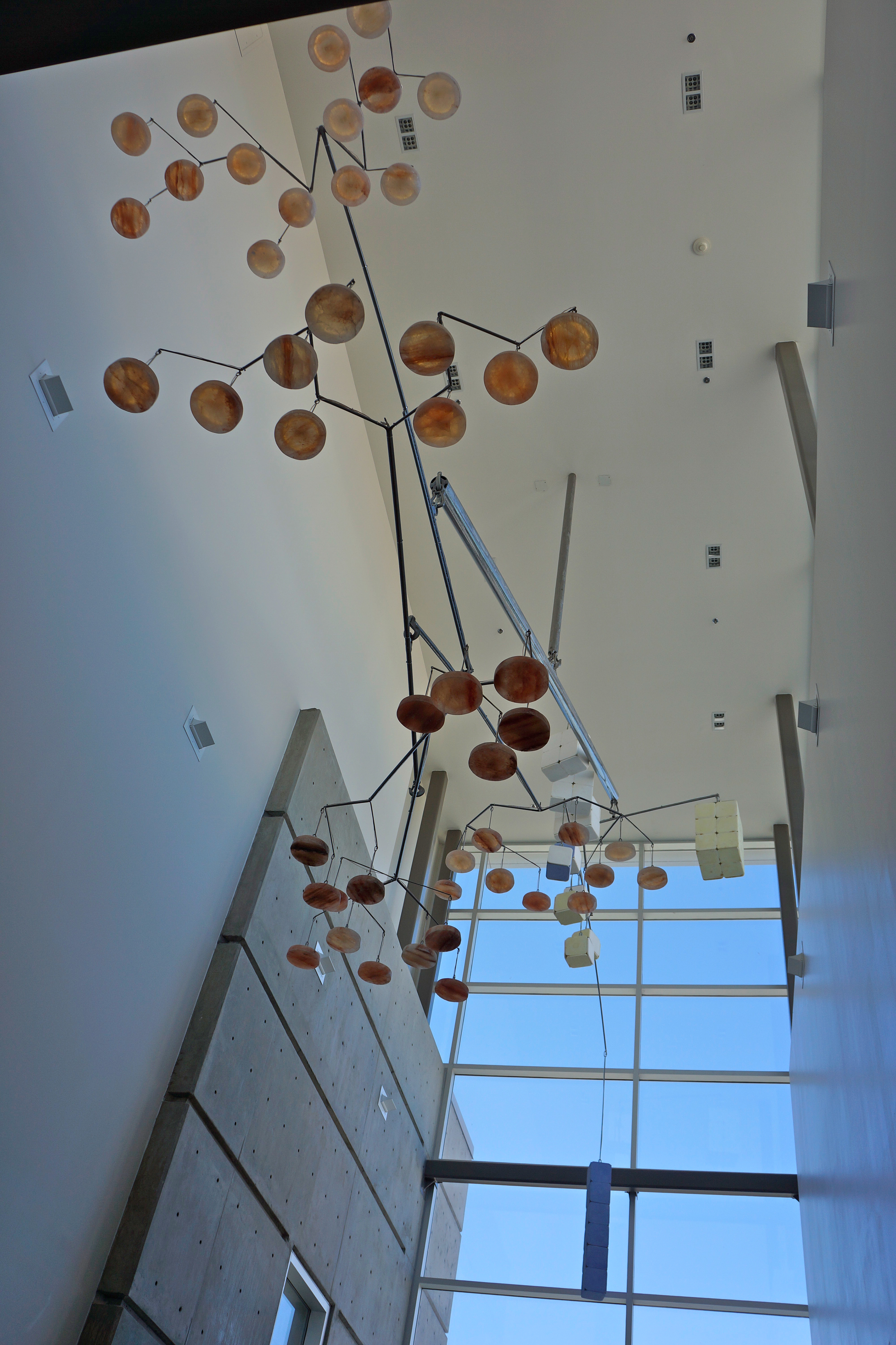 The commission was granted to me based on a drawing and explanation. I made this little model for a meeting with the library architect and construction team. It was important that I convey the dynamic nature of a true mobile, where all is relational balance. The architects/contractors were great to work with, and were as excited as I was with the concept.