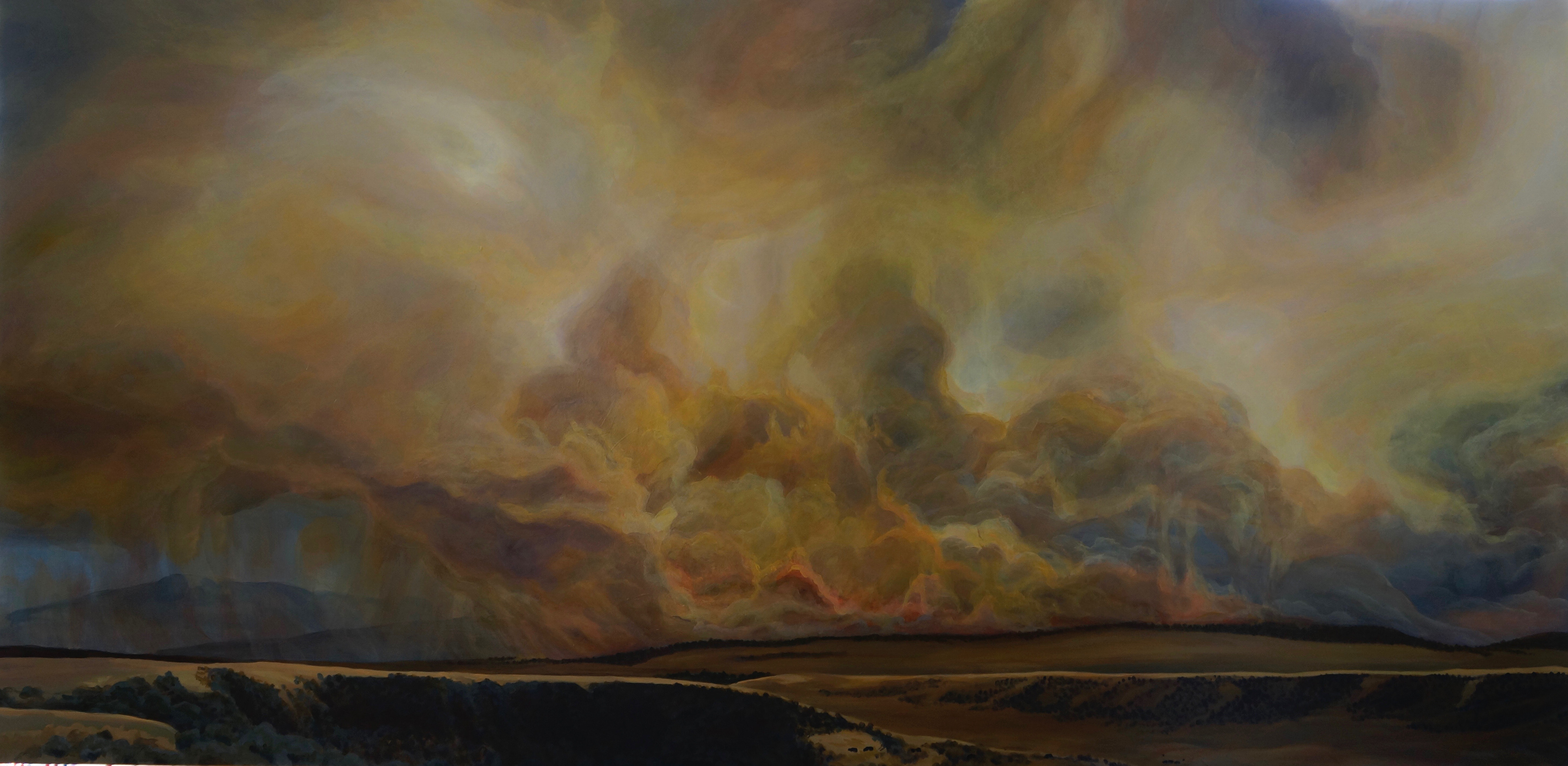 Acrylic on Board. 24" x 48". October 2016 Derived from Broad Canyon fire viewed from I-15, Utah/Idaho border, August 2016.
