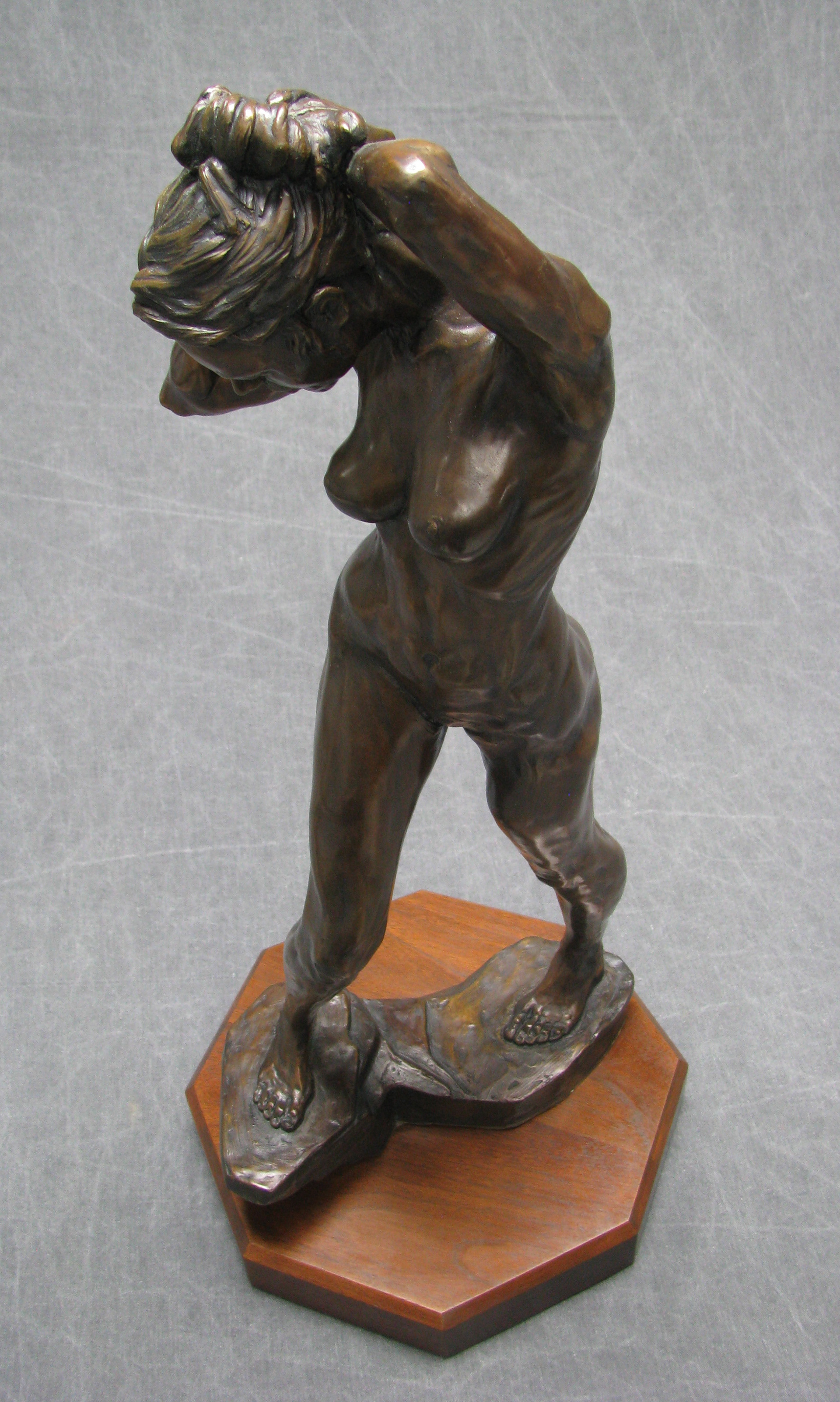 This 1/3 life size bronze sculpture is from the live model. You can see the process of the creation, with another two figures at http://dangerhart.wordpress.com/category/figure-sculpture/ This figure was formed in the fall of 2013.