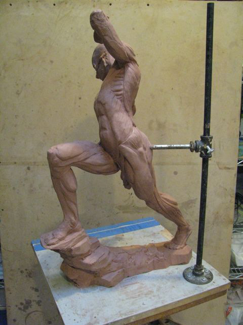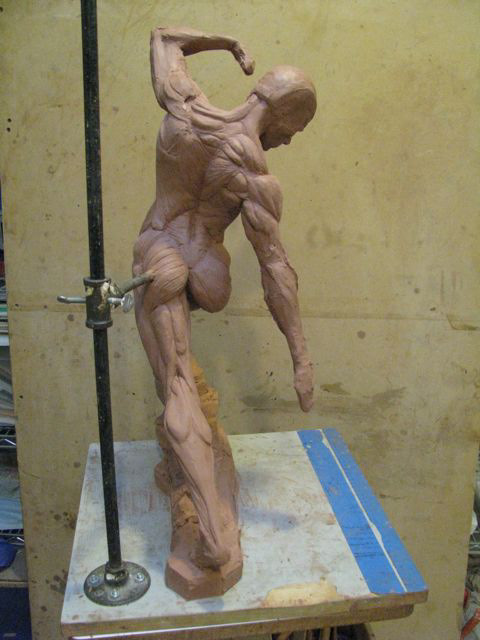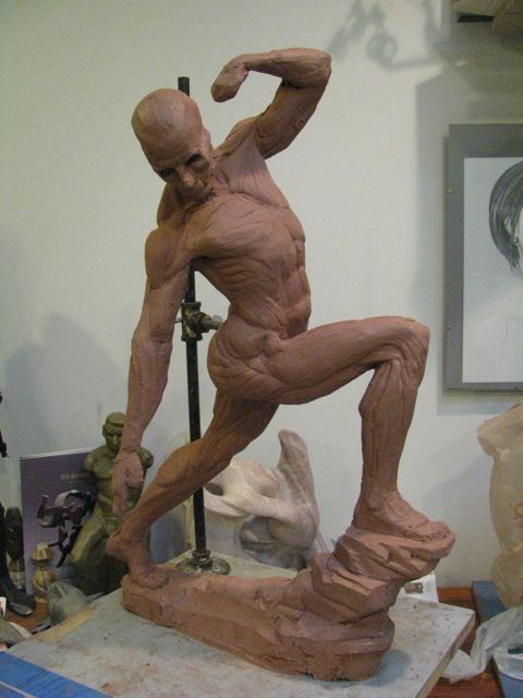 Persephone was the final figure I created in clay during my first undergrad figure sculpture class with Professor John Berland. Berland had come out of retirement offering a few classes to keep active after a heart attack- when he stood beside you offering comments his pacemaker would tic along metronomically to his voice. His art training had been attained in an era when rigorous study of the figure was a core aspect of any sculpture program. In his day, the sculptor focused on the art while a slew of craftspeople would vie to pull molds from anyone with talent. He noted that the hardest part of staying dedicated to figurative work now was that the entire back end of production was up to the artist as well. This glut of non-creative technical labor wears away at the time and patience dedicated to achieve any true ability with figurative work. He liked my sculpture enough to show me how to create a plaster waste-mold so I could create a bronze casting in the college foundry where I worked as an assistant. He recognized that I was the only person remaining at university who could muster the entire process, and dedicated his own time to walk me through the mold process- an entire chapter is dedicated to the process in Edouard Lanteri's third treatise on representational sculpture; Modelling and Sculpting Animals. After another semester of figure modelling with him, he brought me to his office to talk about figurative work as an art-form, and how important the aesthetic and the practice is, and that it is essentially lost. He ran his classes measuring only with string; no calipers and little discussion of anatomy beyond basic skeletal structure, and muscles of major volumetric/functional concern. This helped him to bring along those with natural ability, and dropped away the expressionless "anatomists". He told me about the East Coast academic figurative tradition whose terminus is competitive concrete function-driven pony-shows that foster a false direction and act as a nail in the coffin of the tradition. He encouraged having an anatomy book as a reference, but not to have it in the same room as the life-model. Natural ability will seek out information of anatomy in a longer span of experience, and grow in harmony with the direction of the artist- as it must live with the artist far beyond the brief academic window.