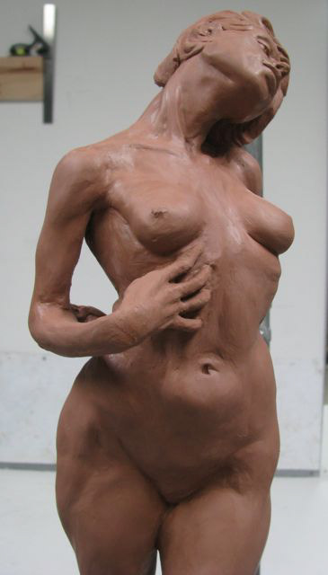 My approach to sculpting the figure is an intuitive process grounded in practice with the live model, familiarity with anatomical structure, formal concern, and media. The figure acts as a challenging vehicle for exploration: rhythm, balance, and gesture are the core signifiers I engage with, allowing anatomy and naturalism to serve as a secondary consideration to expression. Expression of the figure emerges from the act of sculpting in relation to the model, rather than stylization or thematic narrative. Through focus on practice, a more nuanced emotive dialogue may occur- similar to a complex color phrase or musical harmony.