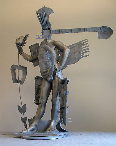 Upon installation the donor and the director of the Utah Symphony and Opera were happy with the work and hoped that the placement, offering great exposure to all the important local art collectors and arts-centric funding foundation representatives, would lead to my work finding a wider backing with further commissions both public and private. This optimism was from individuals who moved in international arts culture, while living in a uniquely particular culture that had no discernment for The Nude as a significant aesthetic, with a moral certitude that the naked is synonymous with the profane. When the director of the organization inevitably moved on in her career path, a replacement was found, and soon after the figures gained clothing made by the costume department at the production center. Soon after that metal thieves disassembled the building's evaporative cooling system, then returned the next night to take the copper gutters and all of my sculptures; all to shred down and sell as scrap metal. I'm sure it was a relief for everyone involved, as the insurance money for the lost art was collected, with no interest in replacing the Nude figures. These destroyed pieces are the only public art I have created that is aligned with my own aesthetic; in other words, the only commission that a patron saw my Master's Thesis Exhibition work and said "Yes, your work is amazing, but bigger please"- and for the public, and in front of a major arts building.